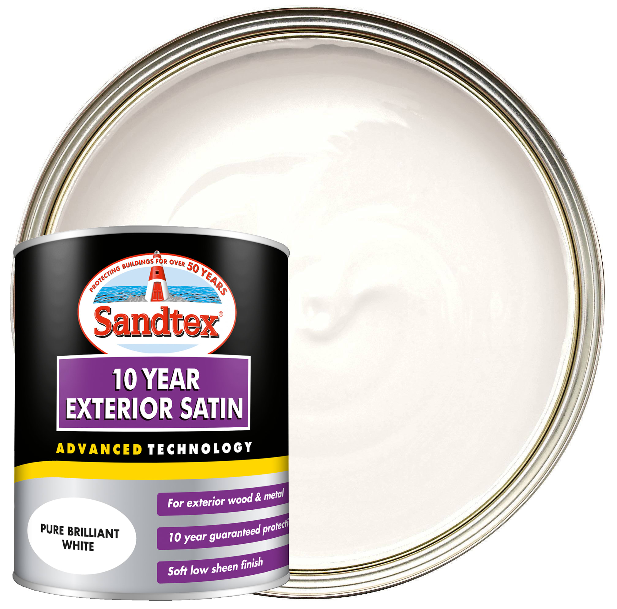 Sandtex 10 Year Exterior Satin Paint Pure Brilliant White 750ml Wickes Co Uk